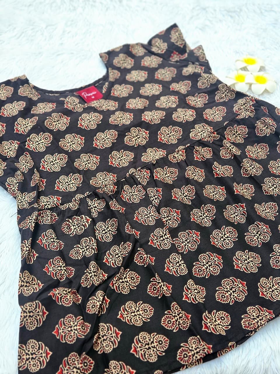 Be the first to review ““Elegant Black Cotton Peplum Top with Brown Floral Prints””