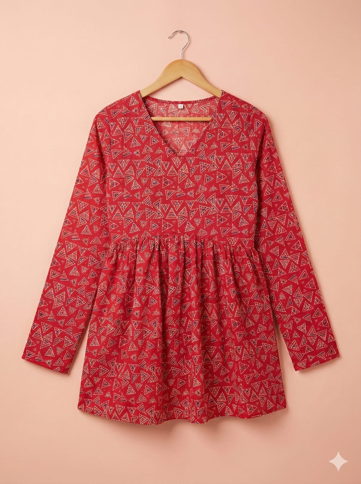Be the first to review “cotton _red full-sleeve peplum top.”