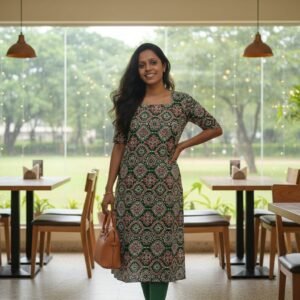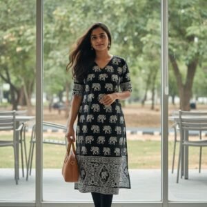 This beautiful cotton kurti is the perfect combination of comfort and style. Made from soft cotton fabric, it’s perfect for wearing all day long. traditional touch. It’s perfect for wearing to the office, parties, or casual events.