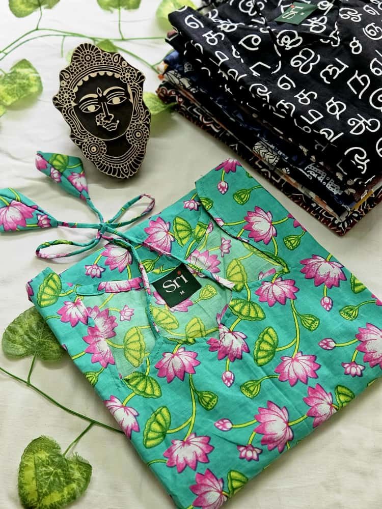 Be the first to review “Women’s Cotton Kurti – Green Lotus Bloom Print”