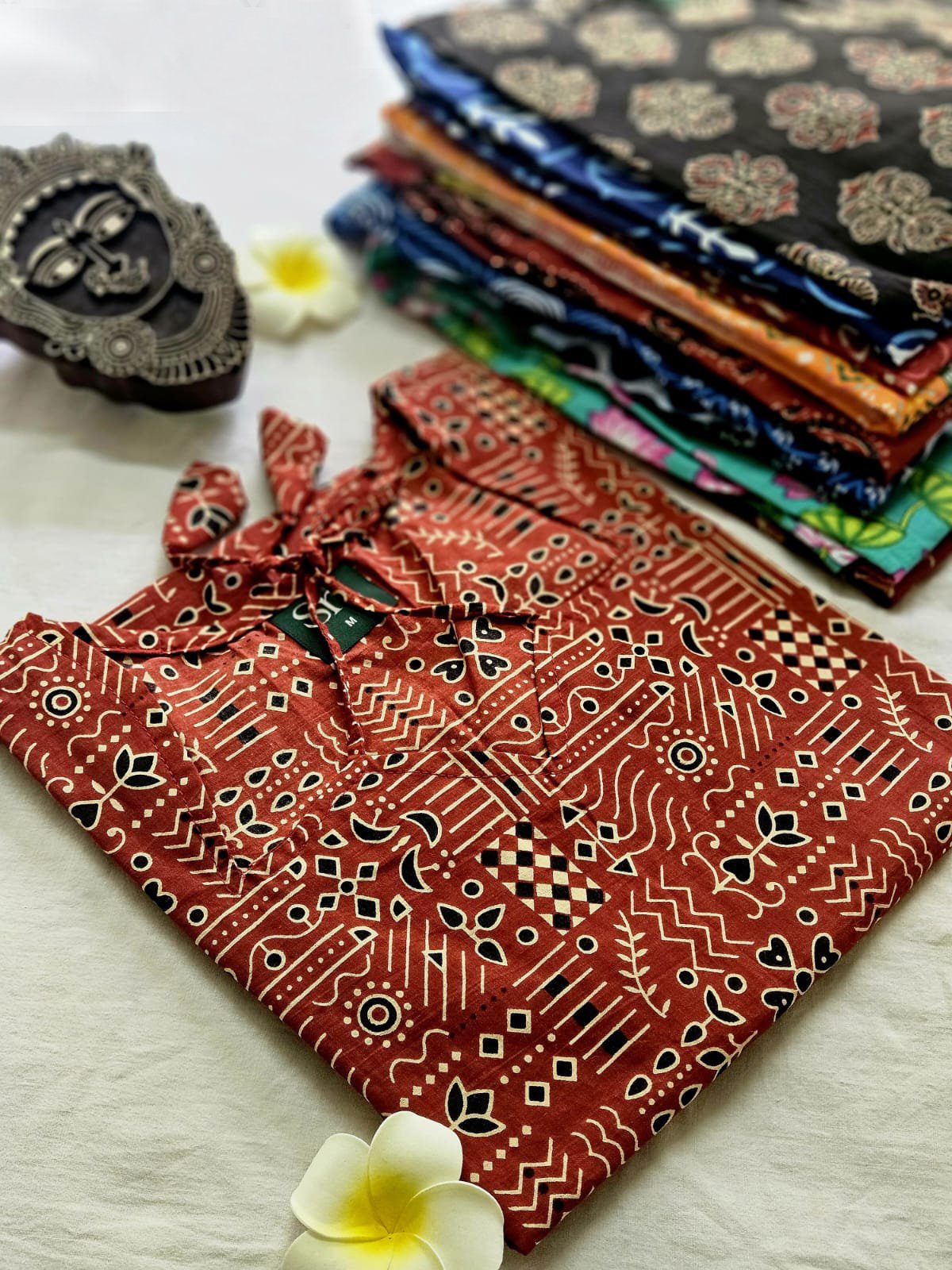 Be the first to review “Women’s Cotton Kurti – Rust Tribal Geometry Print”